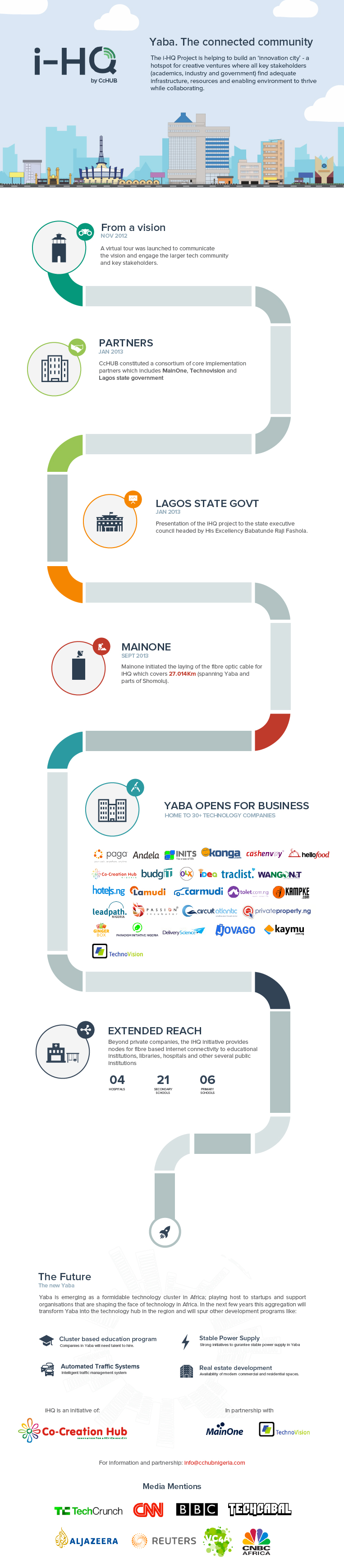 a). i-HQ – Innovation City: albeit cliché, it is unique in its own way. We conceptualised the i-HQ as part of our overall goal to accelerate the application of social capital (gains from collaboration amongst citizens) and technology for social good. A virtual tour was launched early 2013 http://cchubnigeria.com/i-HQ/ giving us the chance to sample the community’s opinion and engage key stakeholders.